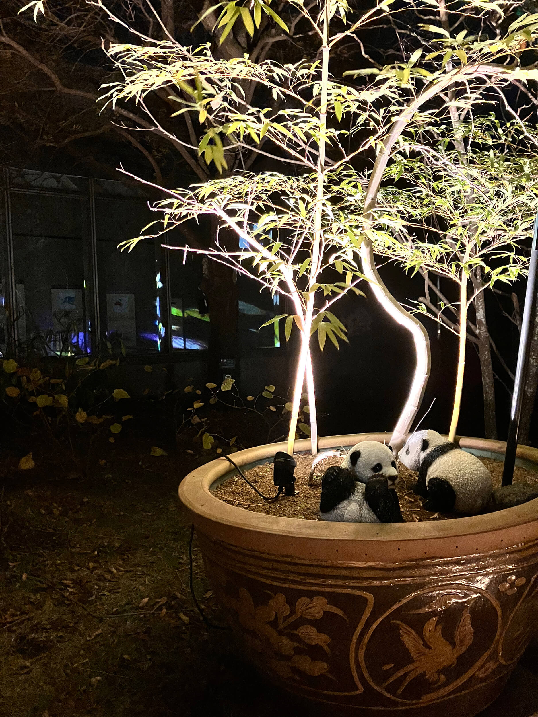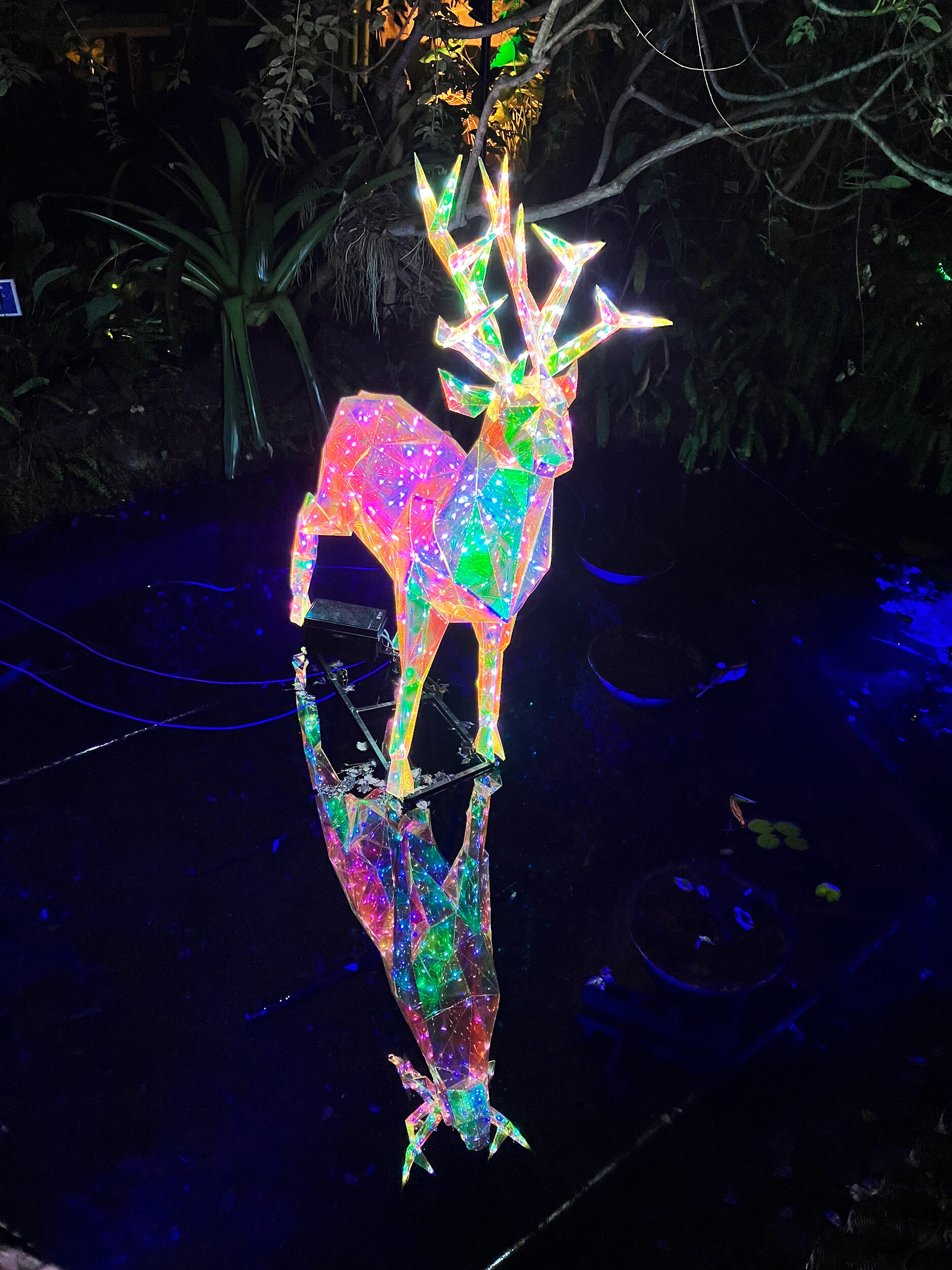 また、園内の各ポイントでは光のショーも行われており、タイミングが合うと幻想的な演出を楽しむことができました。