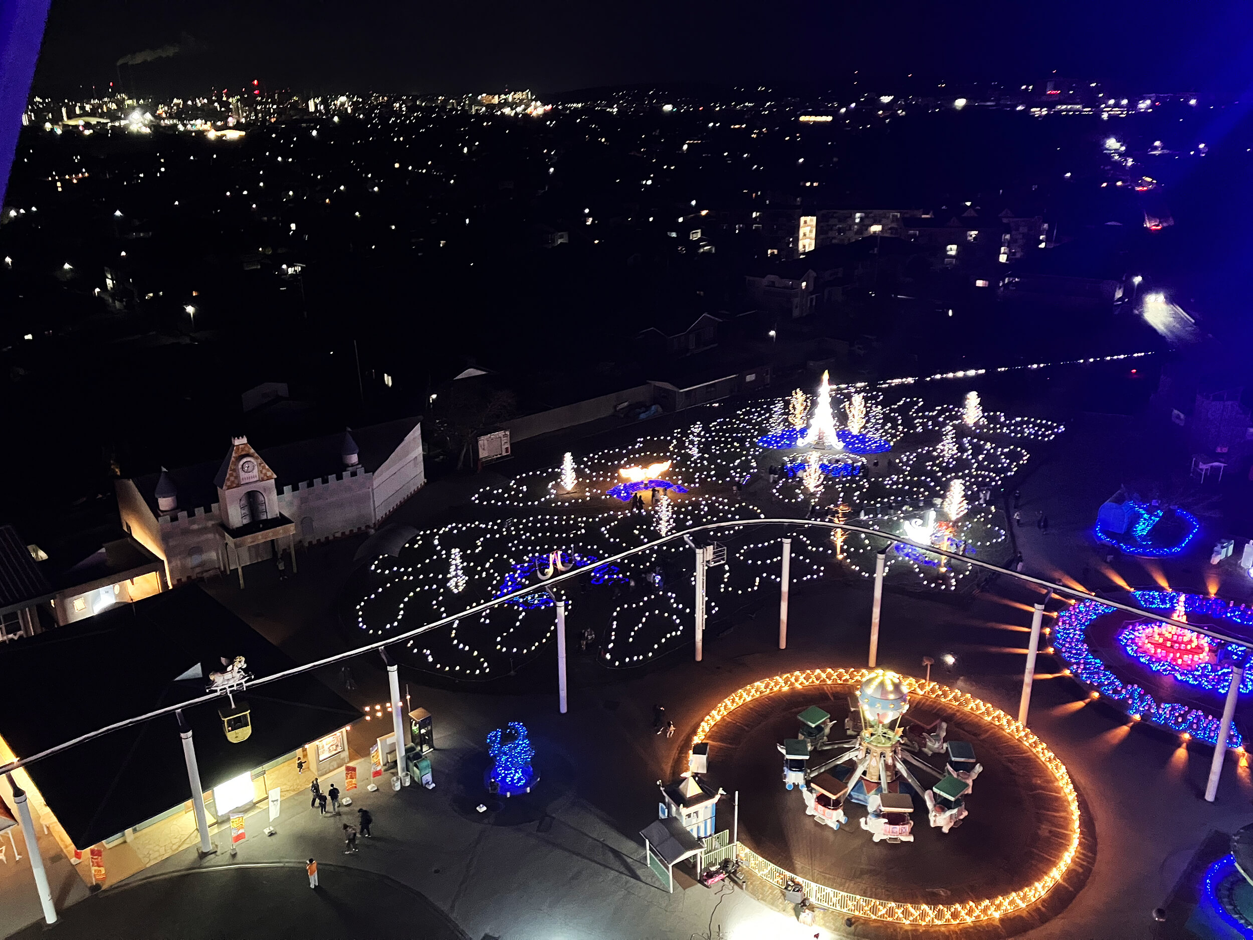 夜の遊園地はどこかドキドキする雰囲気がありますね。