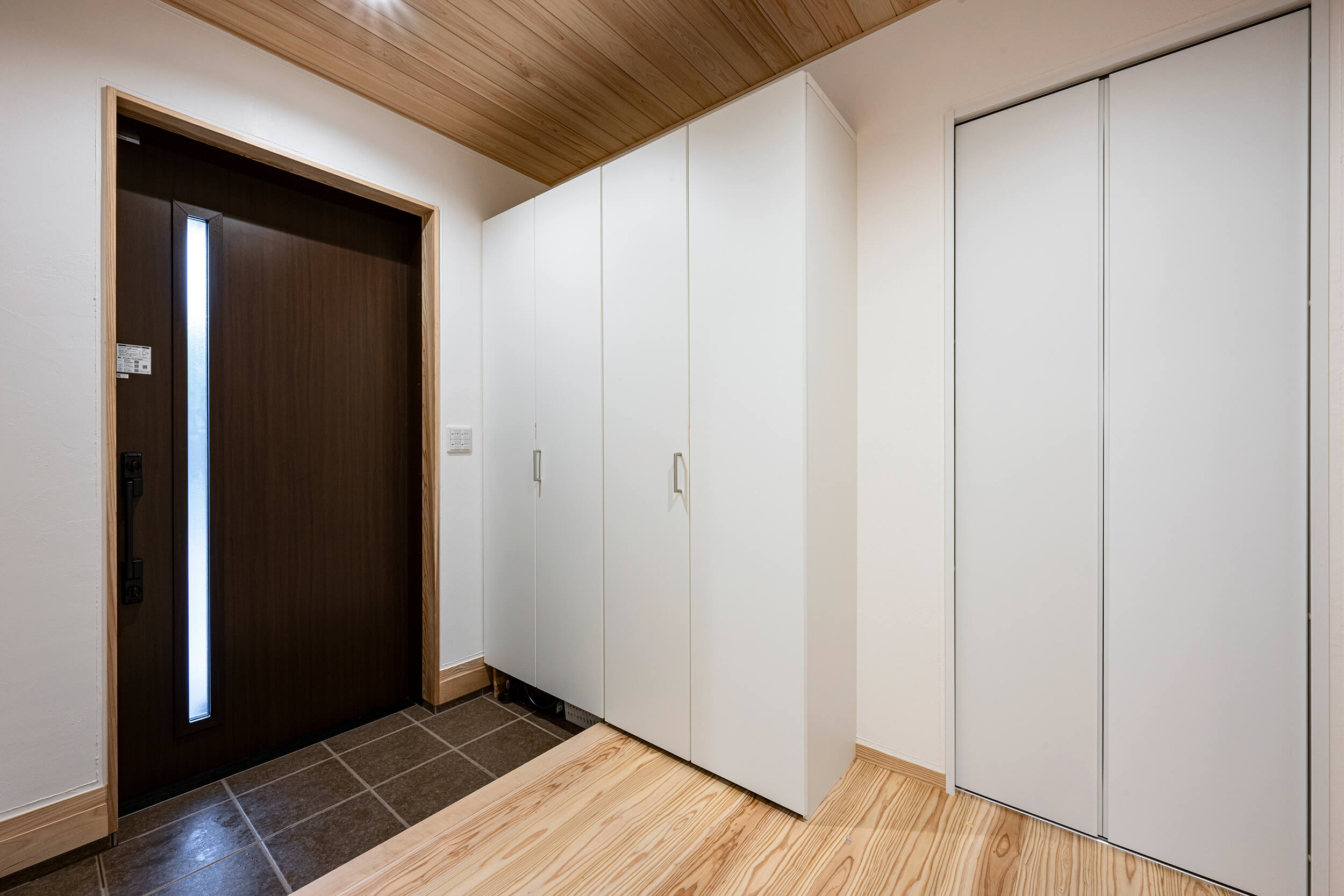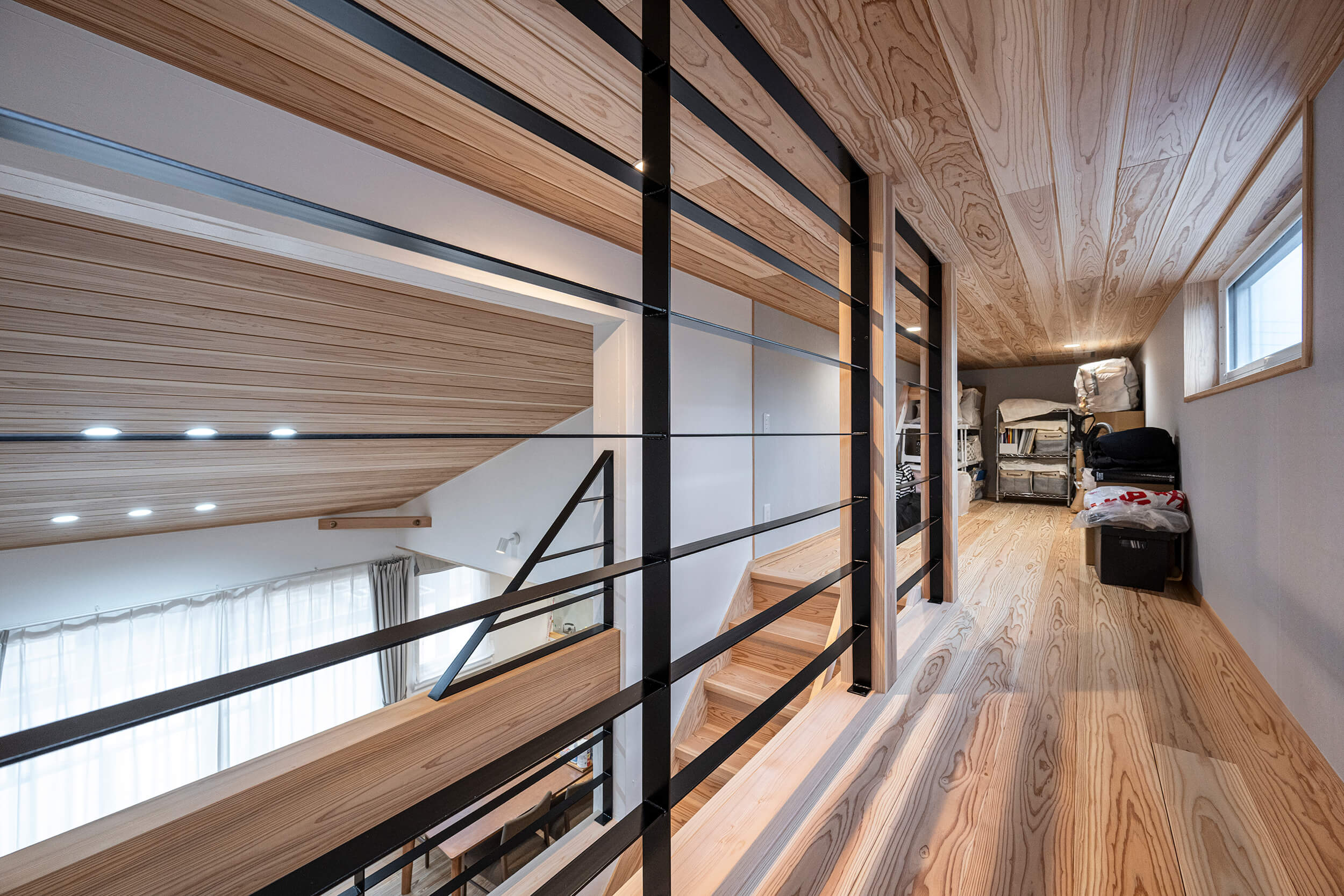 階段を上がった先の2階には、ちょっとした収納スペースを確保し、日用品のストックや季節物の整理に便利な場所として活用できます。