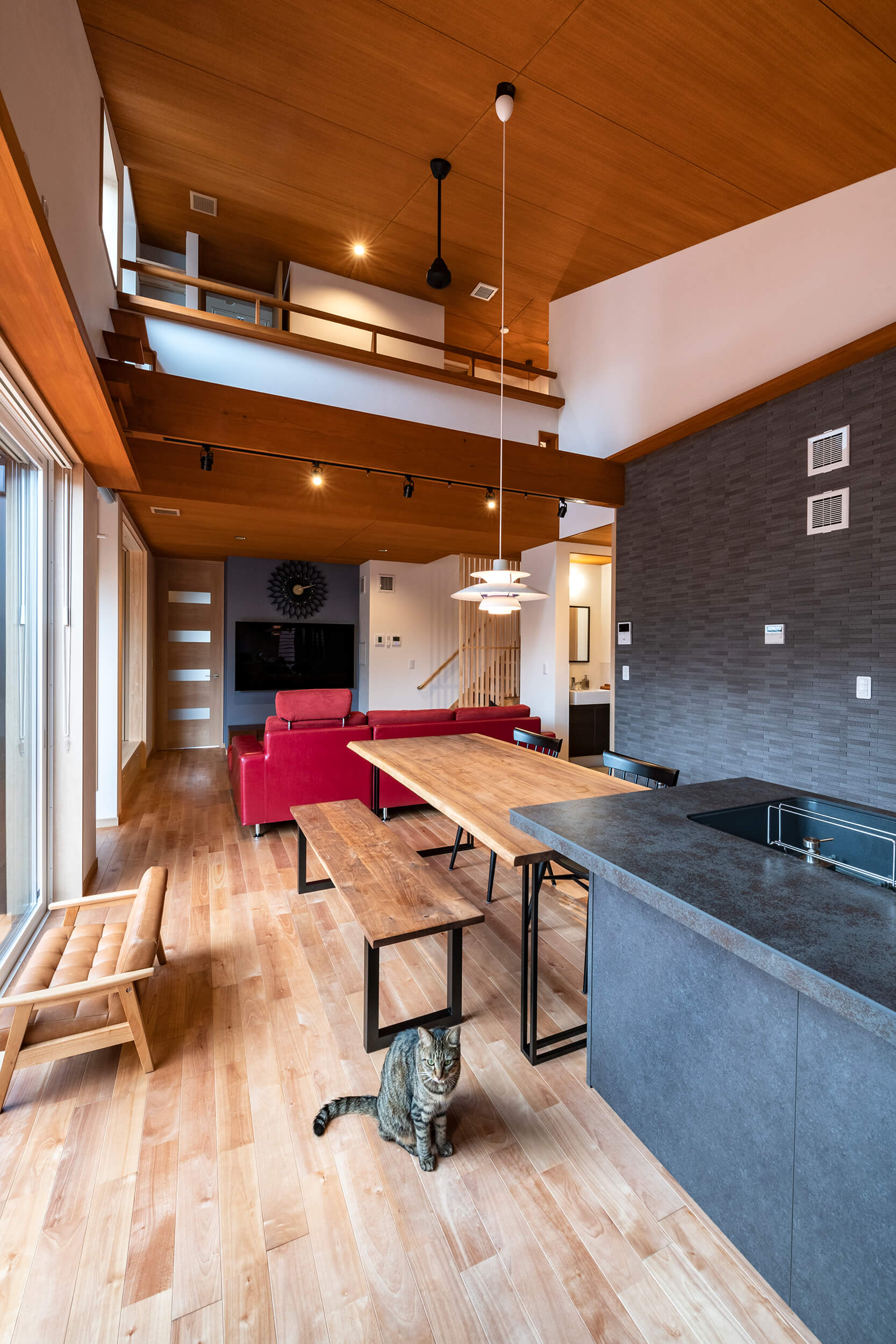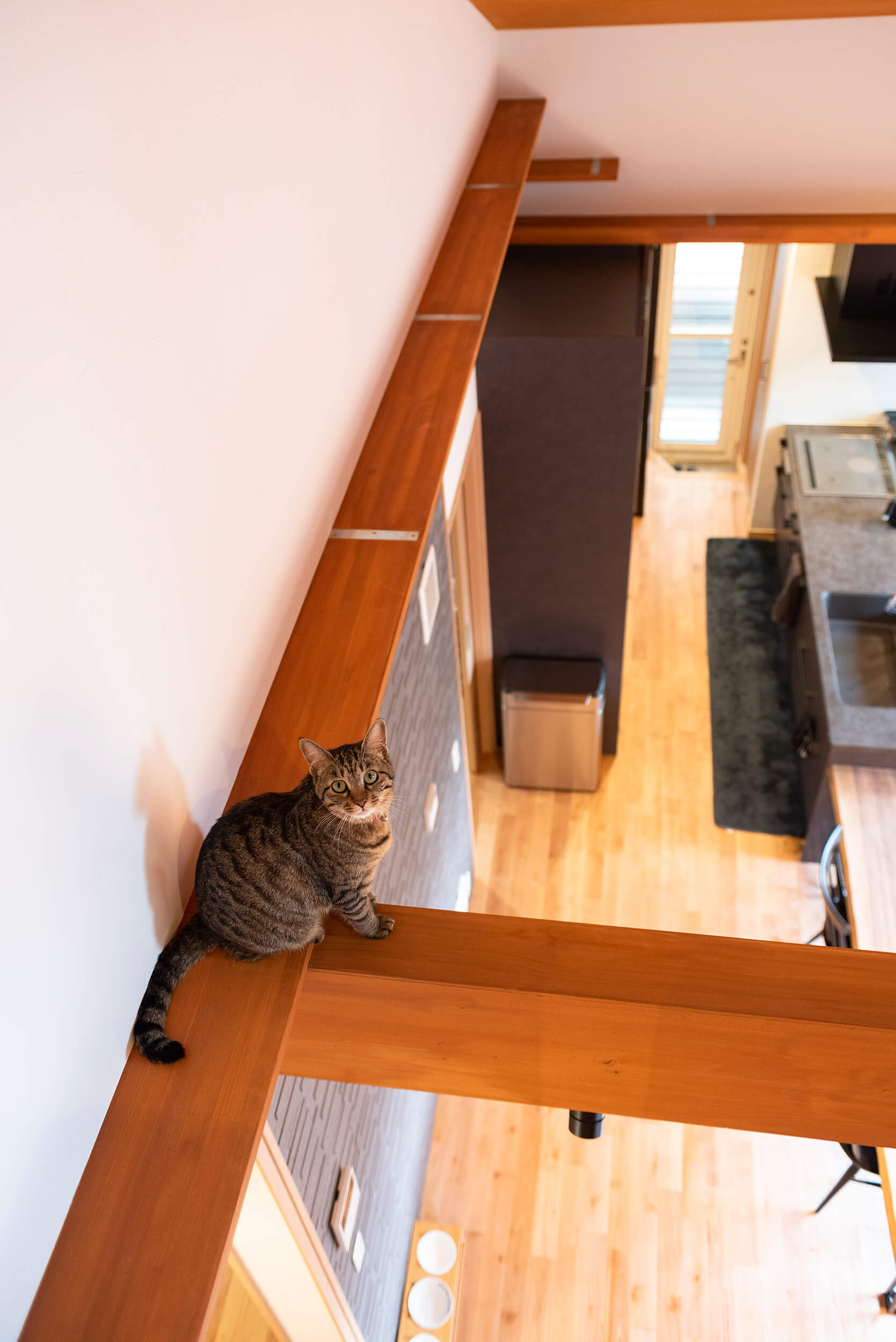 梁をキャットウォークにすることで、猫ちゃんたちの居場所も確保しています。